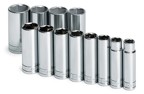 12 Piece 1/2" Drive 6 Point Deep Fractional Chrome Socket Set