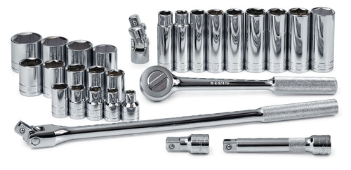 28 Piece 1/2" Drive 6 Point Std and Deep SAE Socket Set