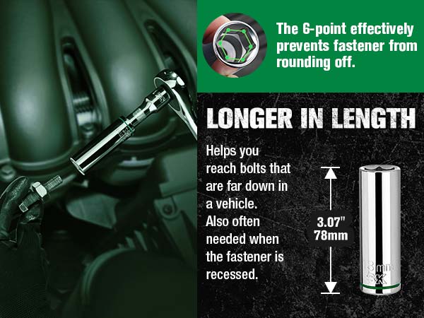 - 1/2" Drive, 11 Piece, 6 Point, Deep, Metric Chrome Socket Set
